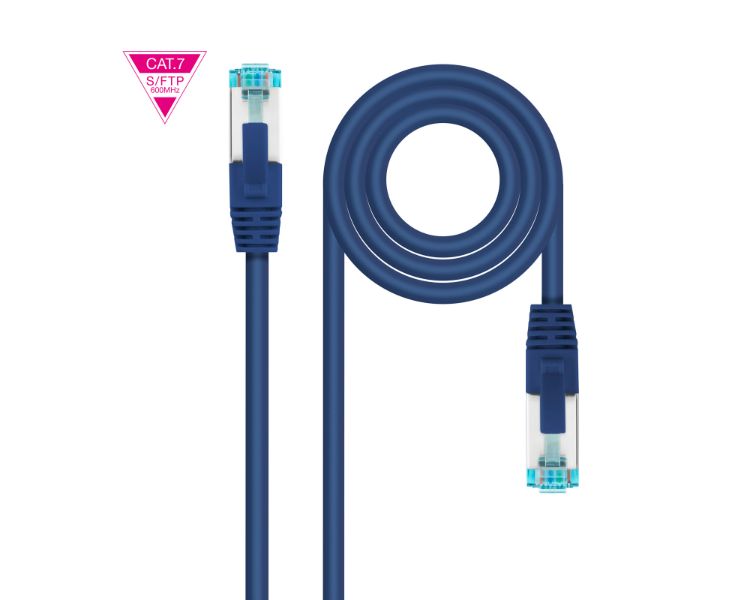 CABLE DE RED LATIGUILLO 600MHZ LSZH SFTP PIMF CAT7 AWG26 0.30 M AZUL NANOCABLE