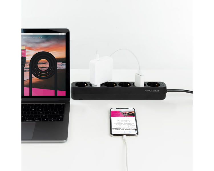 BASE DE 3 ENCHUFES x4USB (2 USB A + 2 USB-C) + INTERRUPTOR BLANCO NANOCABLE