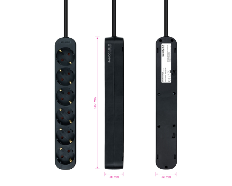 REGLETA PROTECTORA 6 TOMAS NEGRO NANOCABLE