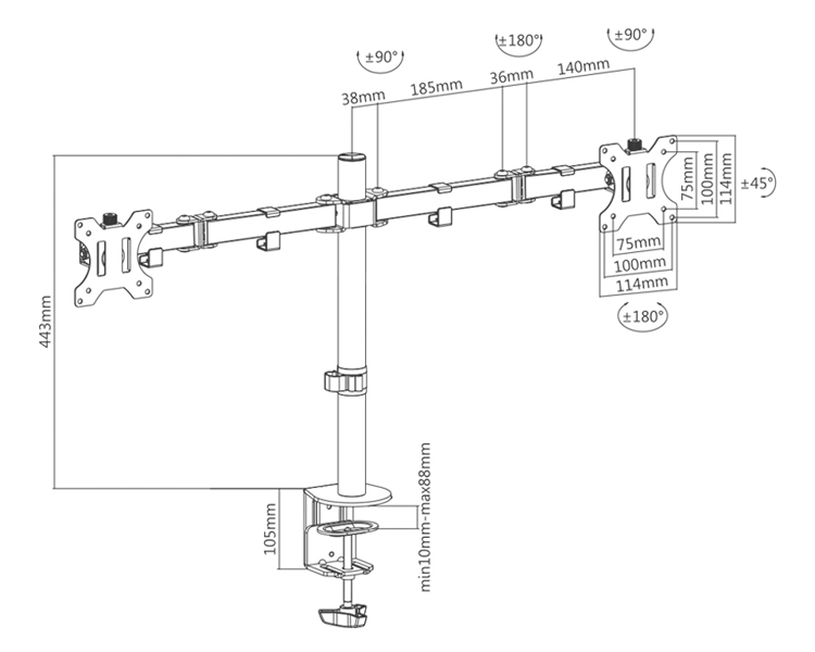 Soporte de mesa orientable para 2 pantallas (monitor / plasma / LCD / LED) de 13" a 32" (depende de la instalación y del espacio disponible) con 3 puntos de giro