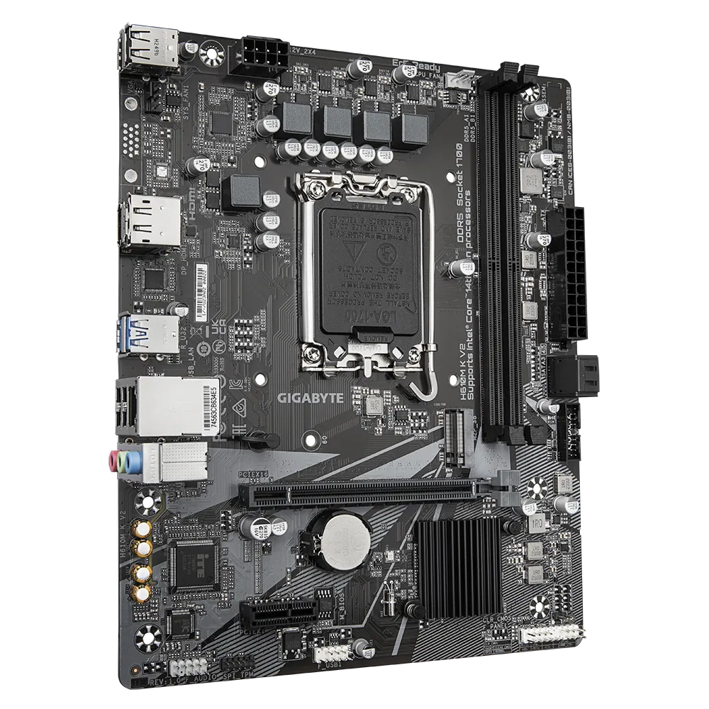 LGA1700 / H610 / DDR5 / HDMI x1 / DisplayPort x1 / USB 2.0 x4, USB 3.2 Gen1 x1 / micro-ATX