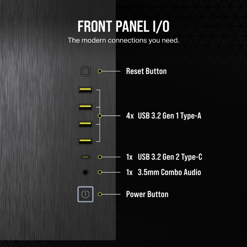 INT: 2x2'5, 2x3'5/ 4xUSB3.2, 1xUSB3.1 Tipo-C/ Audio In/Out/ Compatible con placas de conector inverso (Asus BTF y MSI Project Zero)