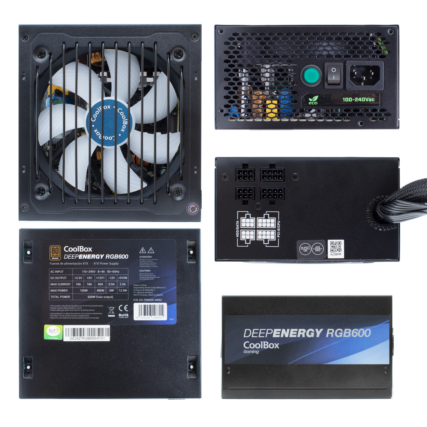 600W/ 80 Plus Bronze/ Eficiencia de hasta el 85%/ Ventilador silencioso de 120mm