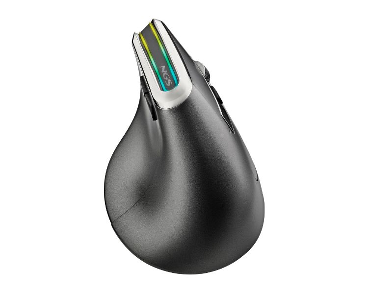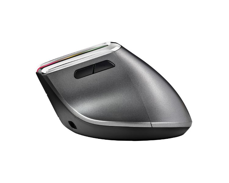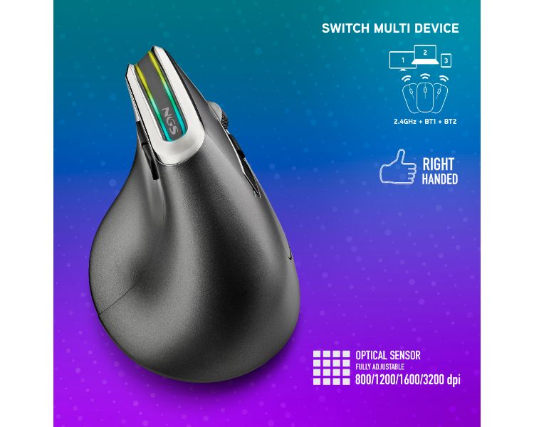 Ratón vertical ergonómico e inalámbrico con tecnología multidispositivo y luces LED.
