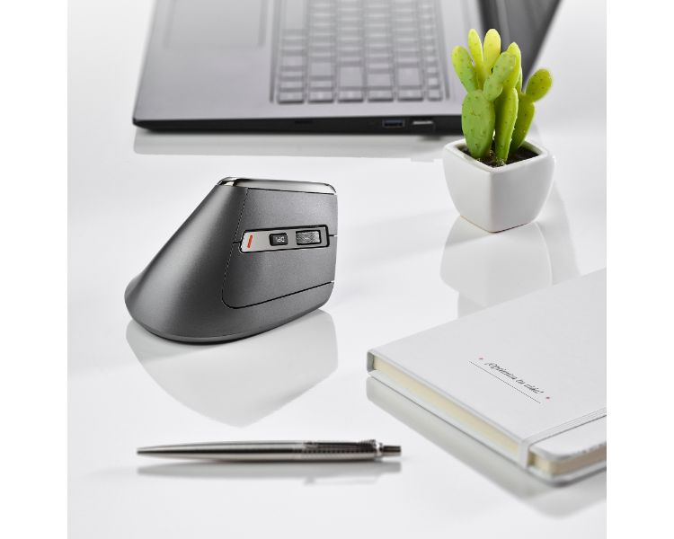 Este ratón vertical cuenta con 5 botones y una rueda de desplazamiento.