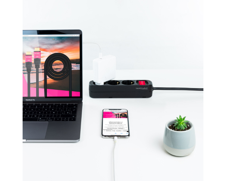 REGLETA PROTECTORA 3 TOMAS NEGRO NANOCABLE