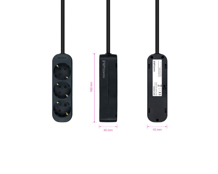 REGLETA PROTECTORA 3 TOMAS CON INTERRUPTOR NEGRO NANOCABLE