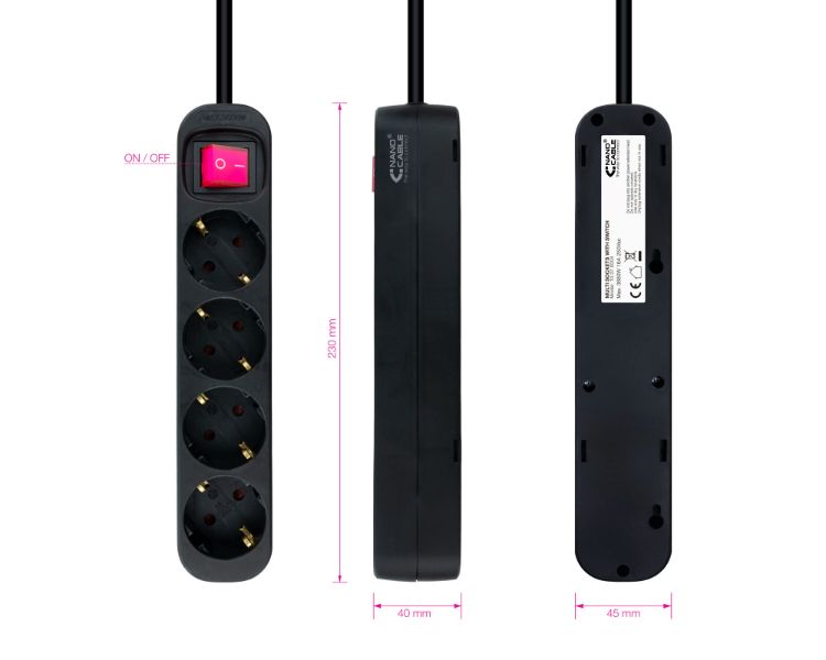 REGLETA PROTECTORA 4 TOMAS CON INTERRUPTOR NEGRO NANOCABLE