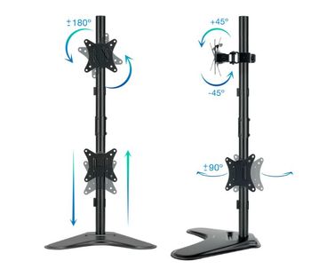 SOPORTE MESA 2 PANTALLAS VERTICALES GIRATORIO E INCLINABLE 17''-32'' NEGRO TOOQ