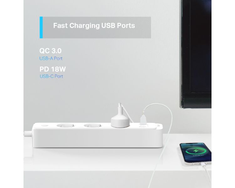 TP-LINK REGLETA 3 ENCHUFES INTELIGENTE WIFI + USB TAPO P300