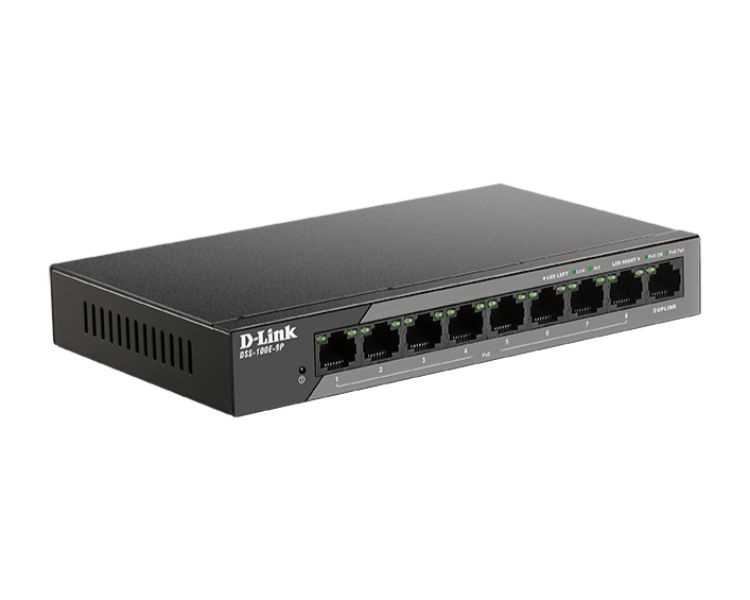 • 8× puertos RJ45 10/100/1000 Mbps PoE+ (compatibles con 802.3af PoE y 802.3at PoE+)